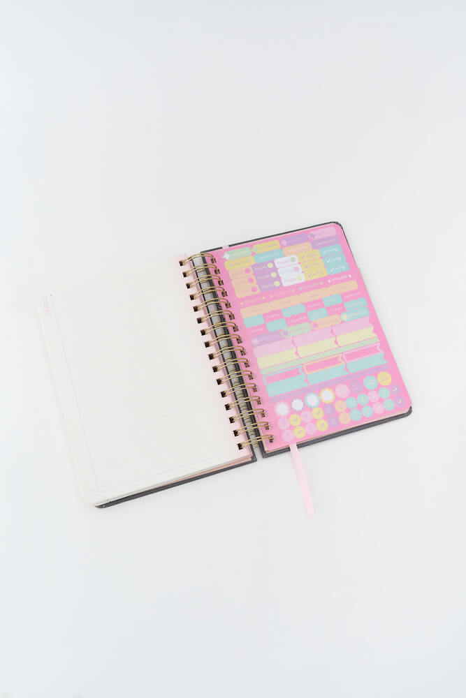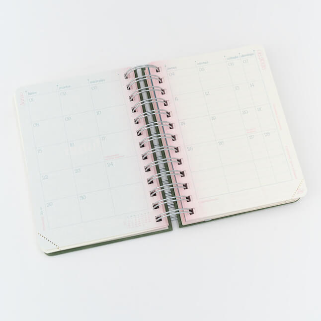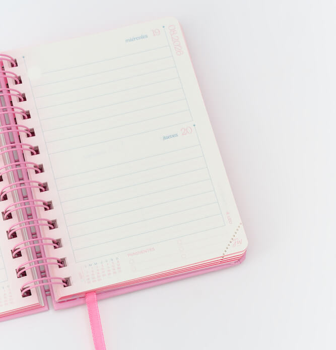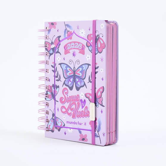 Encuadernación espiral metálico RING Wire, vista 2 días por pagina y diseños exclusivos que se adaptan a vos, son perfectas para planificar cada día con estilo y practicidad.
